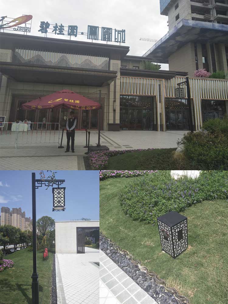寶雞碧桂園庭院燈草坪燈項目是我們公司2018年7月完成的項目,燈具采用的是純黑方管燈桿,單挑臂造型光源,復古典雅,主體顏色與樓體顏色相呼應,在造型上和視覺上給人一種一體的美感。