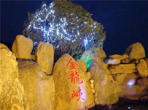 簡介—— 陜西蘭光戶外照明有限公司為西安市金龍峽景區設計安裝的噴泉亮化工程效果展示照片